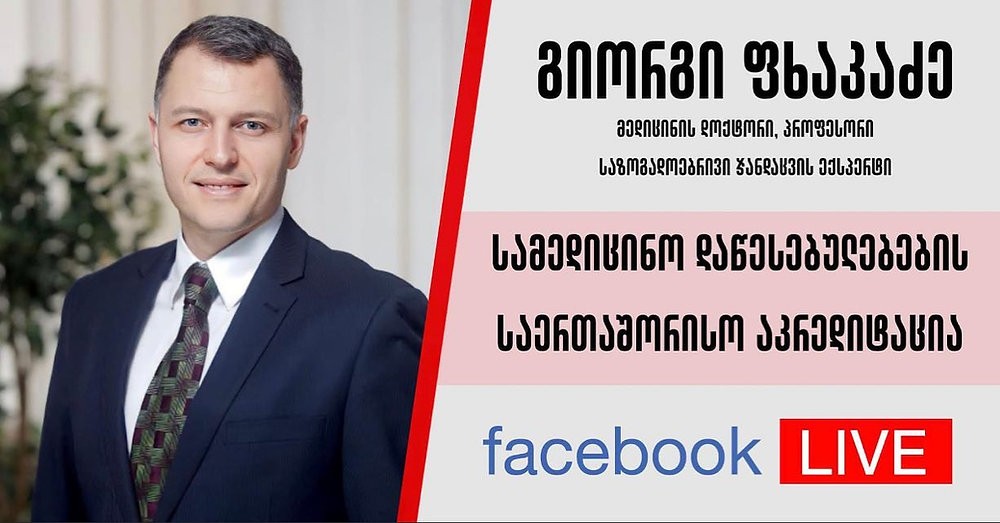 7 აპრილს, 22:00 საათზე სამედიცინო დაწესებულებების საერთაშორისო აკრედიტაციის შესახებ ისაუბრებს მედიცინის დოქტორი, პროფესორი, საზოგადოებრივი ჯანდაცვის ექსპერტი, “Accreditation Canada” ოფიციალური წარმომადგენელი საქართველოში გიორგი ფხაკაძე,