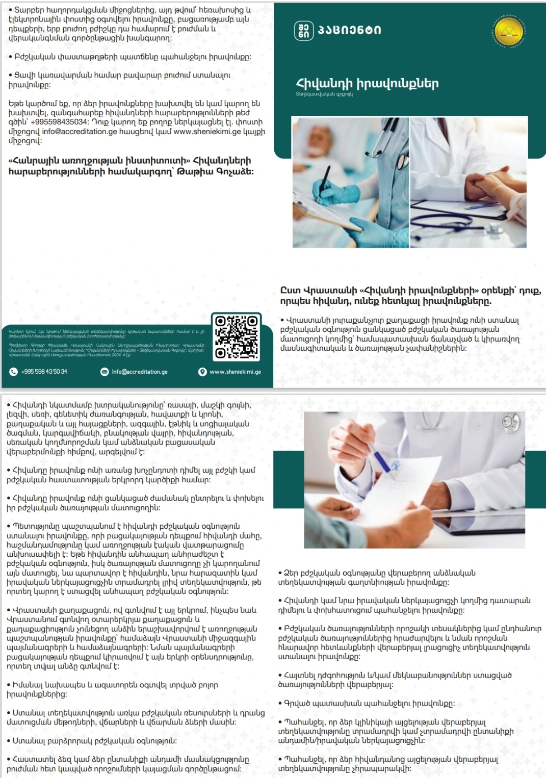 Հիվանդի իրավունքներ – Տեղեկատվական գրքույկ | sheniekimi.ge | შენი ექიმი