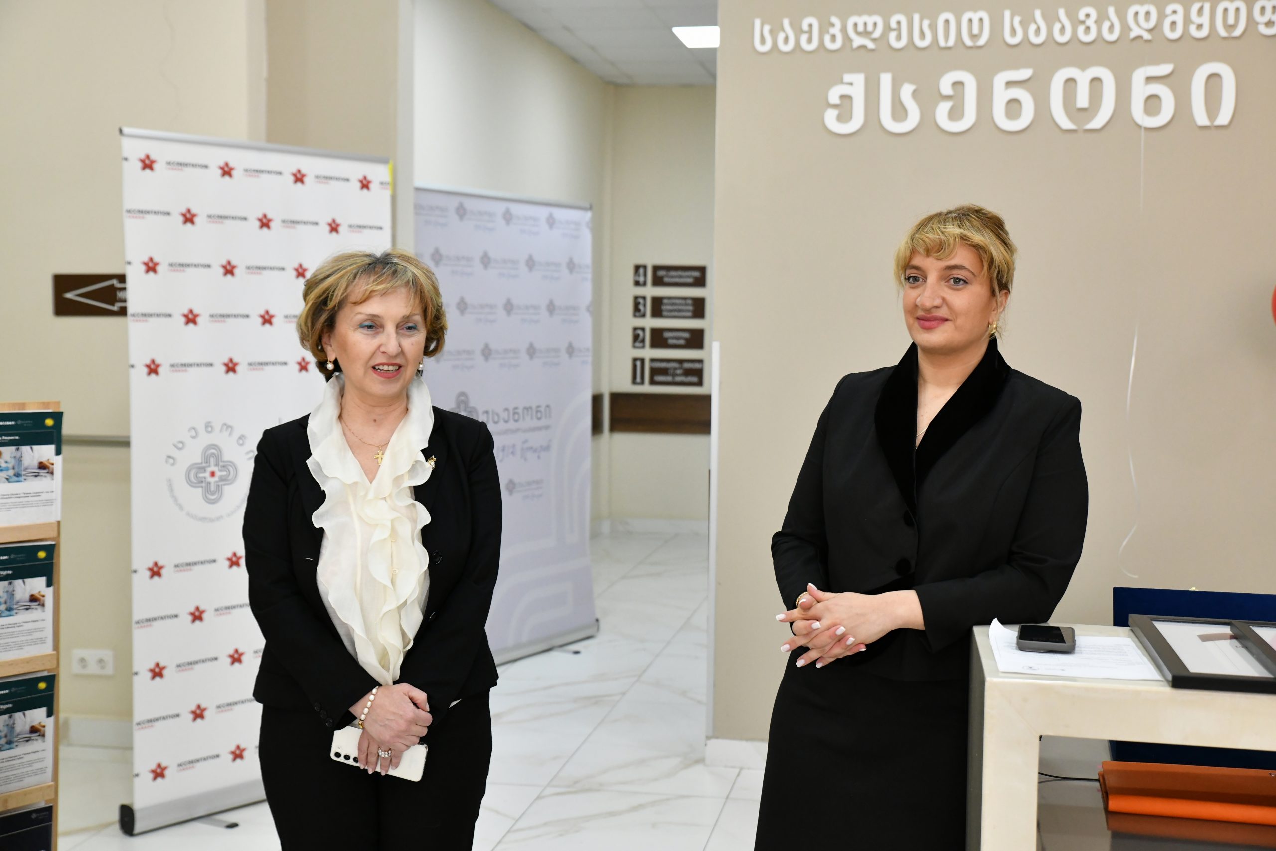აკრედიტაცია კანადის მრჩეველი ირინე ფხაკაძე და ქსენონის კლინიკური და ადმინისტრაციული ხელმძღვანელი მაგდა კოსტავა