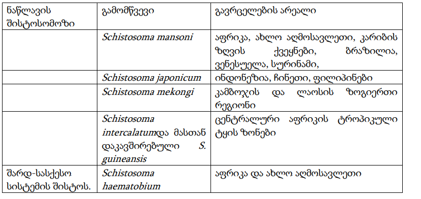 სისტემის, რომელთა გამომწვევია შისტოსომას 5 სახეობა: