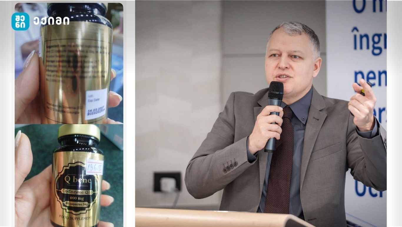 პაციენტმა შეიძინა Q bene Co-Enzyme Q10 (200mg). ფასი? თითქმის 200 ლარი. ბოთლზე მხოლოდ ინგლისური წარწერები: „food supplement“, „produced in Slovenia“.