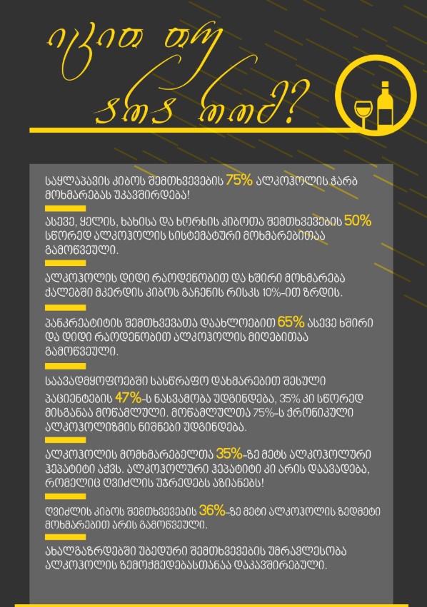 - ახალგაზრდებში უბედური შემთხვევების უმრავლესობა ალკოჰოლის ზემოქმედებასთანაა დაკავშირებული