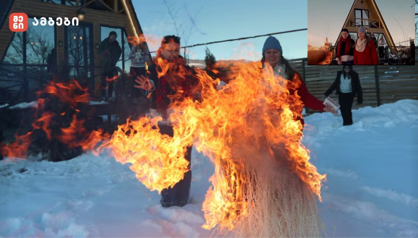 ფოტორეპორტიორ ირაკლი გედენიძის მეუღლემ ნათია გედენიძემ ხის ქოხის წინ, ერთი მეტრი (3.28 ფუტი) სიმაღლის თოვლში დეკორატიულ ნაძვის ხე (ჩიჩილაკი) დაწვა.