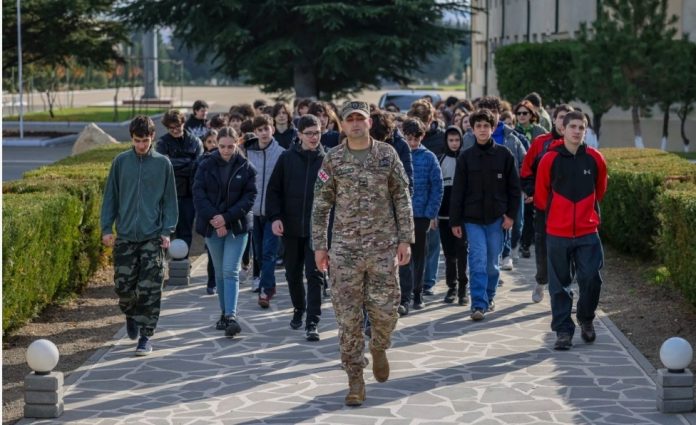 მოსწავლეებმა სამხედრო ბაზაზე სტუმრობა საქართველოს ტერიტორიული მთლიანობისთვის დაღუპული სამხედროების მემორიალთან პატივის მიგებით დაიწყეს, რის შემდეგაც ქვედანაყოფის შექმნის ისტორიას გაეცნენ. უფროსკლასელებმა ბაზის ინფრასტრუქტურა და ჯარისკაცების საცხოვრებელი პირობები დაათვალიერეს. ისინი ბაზის ტერიტორიაზე გამოფენილ ტექნიკასა და შეიარაღებასაც გაეცნენ.