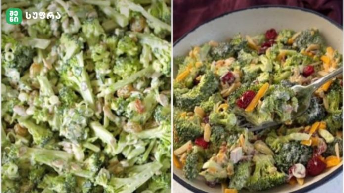 ბროკოლისა და ქიშმიშის სალათი დიჟონის სოუსით