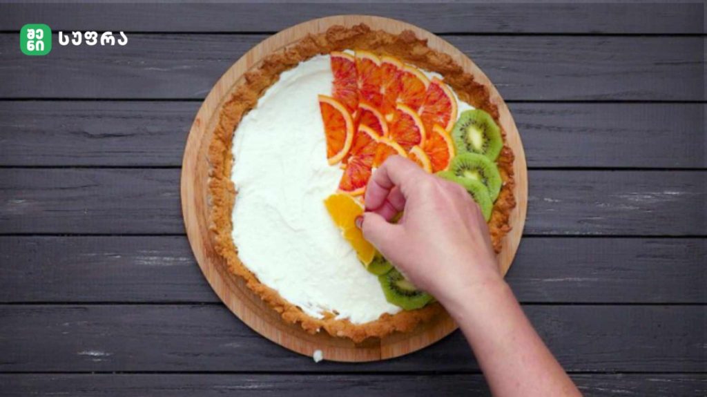 მიღებული კრემი გადაანაწილეთ ფუძეზე და გამოაცხეთ 160 გრადუსზე დაახლოებით 40 წუთის განმავლობაში.