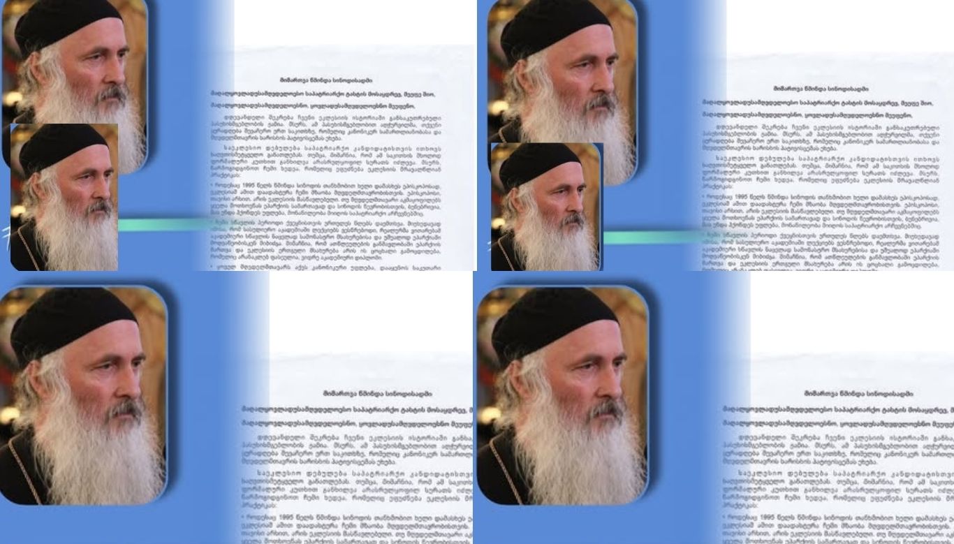 დღევანდელი შეკრება ჩვენი ეკლესიის ისტორიაში განსაკუთრებული პასუხისმგებლობის ჟამია. მსურს, ამ პასუხისმგებლობით აღჭურვილმა, თქვენი ყურადღება შევაჩერო ერთ საკითხზე, რომელიც კანონიკურ სამართლიანობასა და მღვდელმთავრის ხარისხის პატივისცემას ეხება.