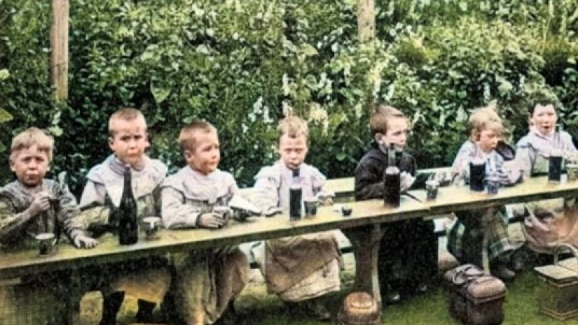 მიიჩნეოდა, რომ ალკოჰოლი კარგად აცხელებს და კლავს მიკრობებს. ამიტომ, ბავშვებს შორის ავადმყოფობები რომ შეემცირებინათ, ალკოჰოლს იშველიებდნენ. მე-20 საუკუნის ნებისმიერი ასაკის მოსწავლეს დღეში 4 ჭიქამდე სასმლის დალევის უფლება ჰქონდა: სიდრის, ღვინის ან ლუდის. რა თქმა უნდა, სასმელს წყლით აზავებდნენ, რომ ბავშვებს ყელი არ ჩასწვოდათ და მშვიდად დაელიათ. ყველა შესვენებაზე სასადილოებში თბილ სასმელს არიგებდნენ, ჩაისა და კომპოტის ნაცვლად.