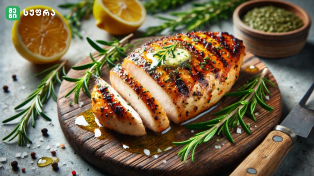 ქათმის ფილე მწვანილებით აეროგრილში