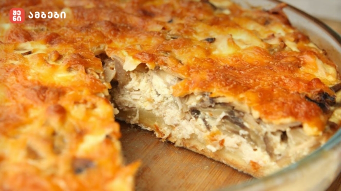 ფხვიერი ღვეზელი ქათმის ხორცით და სოკოთი