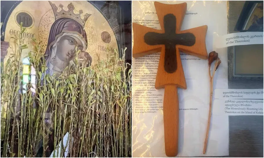 ღვთისმშობლის ხატთან აყვავებული ხმელი შროშანები