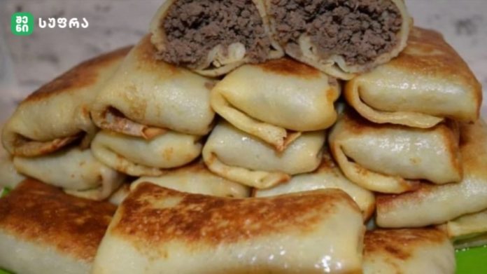 წვნიანი თხელი ბლინები დაფქული ხორცით — მარტივი და საიმედო რეცეპტი