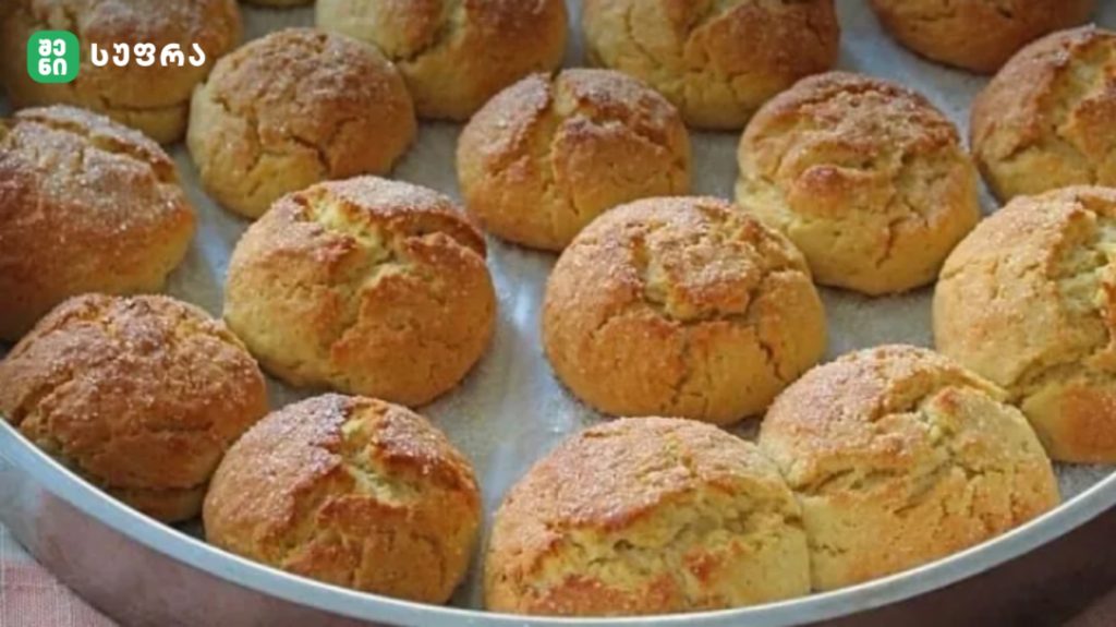 საცხობ ფორმას წაუსვით ზეთი. კოვზის დახმარებით დაალაგეთ პატარა ცომის პორციები. გამოაცხვეთ წინასწარ გახურებულ ღუმელში 180 გრადუს ტემპერატურაზე 30–40 წუთის განმავლობაში.