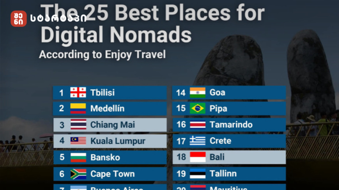 თბილისმა გადაუსწრო ისეთ ცნობილ ადგილებს, როგორიცაა ბუდაპეშტი, ტალინი, ვალენსია, სტამბოლი და საბერძნეთის კრეტას კუნძული. აღნიშნული რეიტინგი, სახელწოდებით „ციფრული მომთაბარე ადამიანებისთვის 25 საუკეთესო ადგილი“, ადგენს ქალაქებს, რომლებიც საუკეთესო პირობებს სთავაზობენ ციფრულ მომთაბარეებს.
