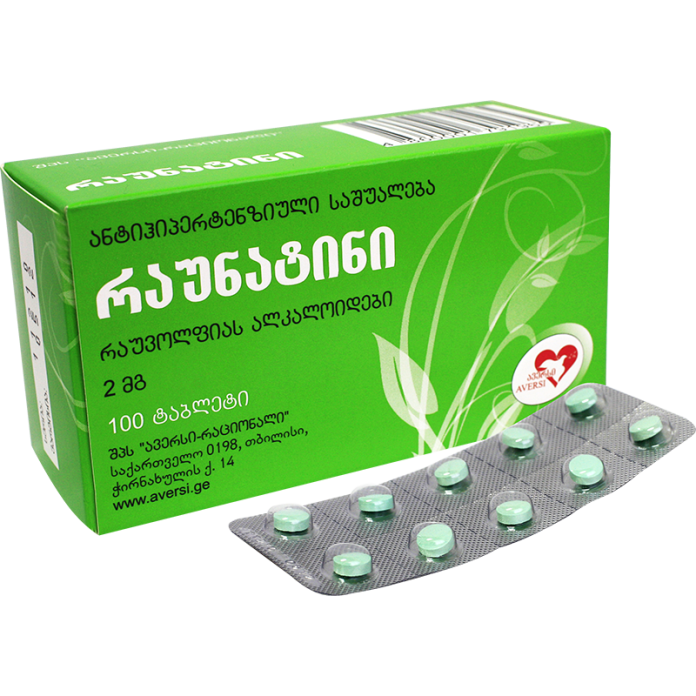 ანტიჰიპერტენზიული პრეპარატები. ადრენერგული ინერვაციის მასტიმულირებელი ზემოქმედების შემამცირებელი ცენტრალური მოქმედების პრეპარატები. რაუვოლფიას ალკალოიდების ჯამი. ათქ-კოდი: C02AA04.